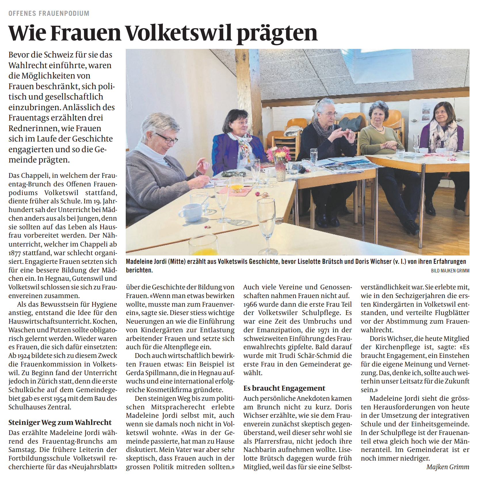 sich früher engagierten und so die Gemeinde prägten. Herzlichen Dank für die lebhaften und interessanten Einblicke! Den Bericht der Volketswiler Nachrichten gibt es hier.